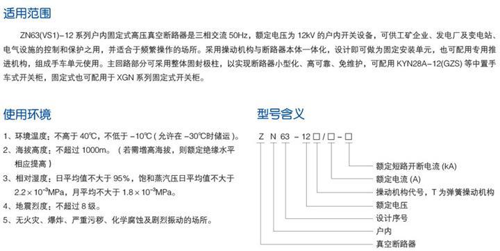 ZN63(VS1)-12系列室内固定式高压真空断路器是三相交流50hz,12kv室内开关装置,可用以操纵和保障工矿企业,发电站,变电站和电力设备适用于频繁操作的场地。